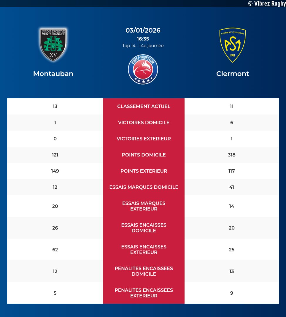 Vibrez Rugby01/01/2026 17:35Montauban – Clermont: Analyse des statistiques et pronostics... Lire la suite sur Vibrez Rugby
