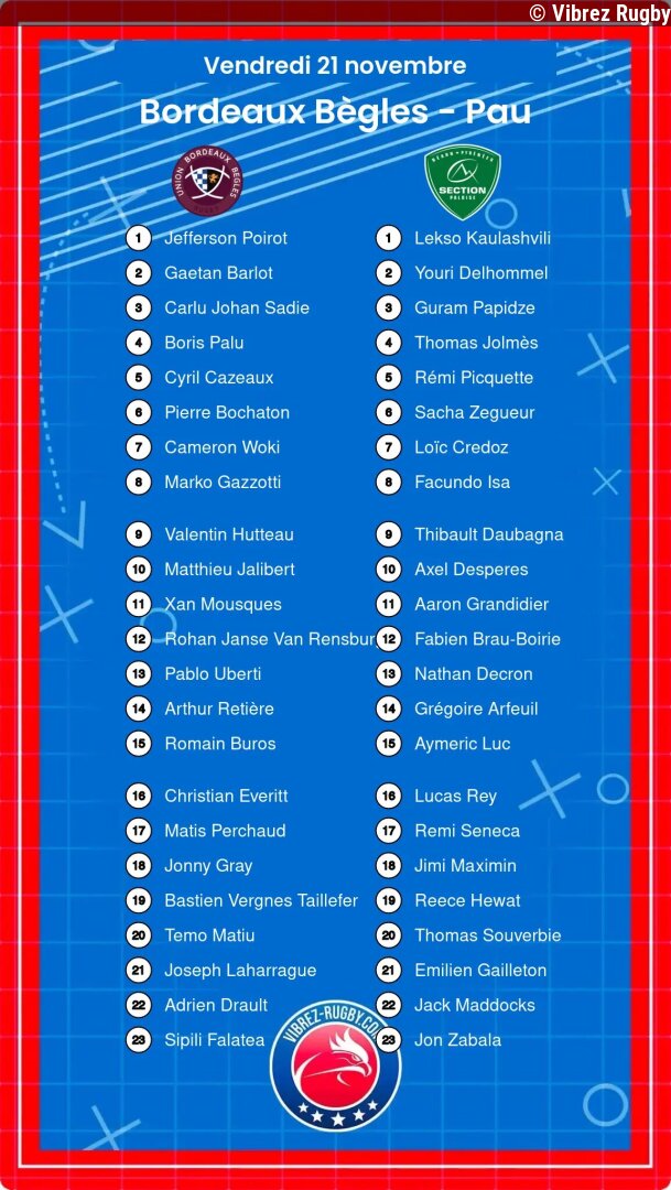 Bienvenue dans notre section des actualités, où nous couvrons tout ce qui touche à l'équipe du Rugby Bordeaux Bègles. Que vous soyez un fervent supporteur ou un simple curieux, vous trouverez ici les dernières nouvelles concernant les matchs, les transferts, les performances des joueurs et les événements spéciaux. Suivez les coulisses du club, découvrez des interviews exclusives avec les joueurs et les entraîneurs, et restez informé des développements clés au sein de cette équipe dynamique. Que ce soit les résultats des matchs, les analyses des performances ou les statistiques des joueurs, notre objectif est de vous fournir une couverture complète et à jour. Ne ratez aucune nouvelle importante qui pourrait impacter le parcours de votre équipe préférée tout au long de la saison. Soyez immergé dans l'univers du rugby à Bordeaux et vivez la passion de ce sport unique. Chaque article est soigneusement élaboré pour vous apporter toutes les informations nécessaires de manière claire et concise. Abonnez-vous à nos mises à jour et rejoignez la communauté des supporteurs du Rugby Bordeaux Bègles pour ne rien rater de l'actualité locale et nationale autour de votre équipe adorée.