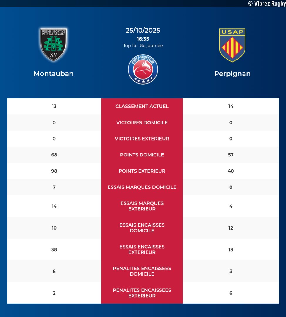 Vibrez Rugby23/10/2025 18:44Montauban – Perpignan: Analyse des statistiques et pronostics... Lire la suite sur Vibrez Rugby